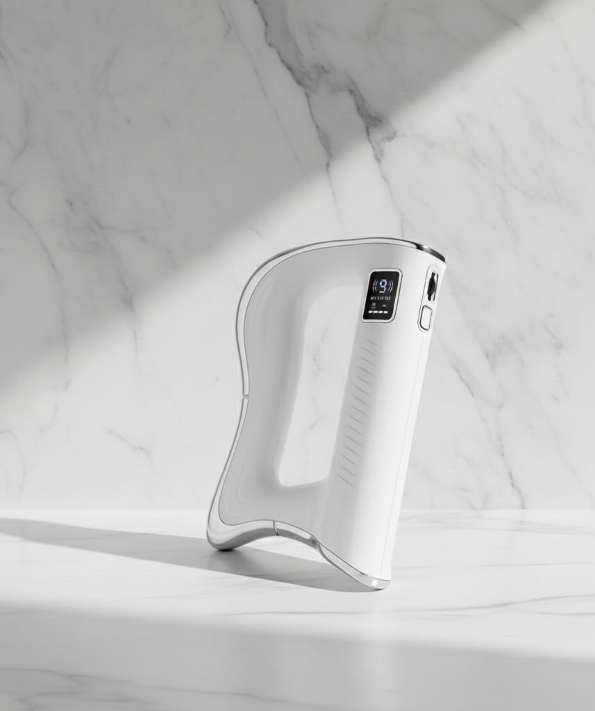 Sanfte Vibration fördert den Lymphfluss und transportiert Wassereinlagerungen ab – Schwellungen verschwinden, dein Gesicht wirkt sofort schlanker.